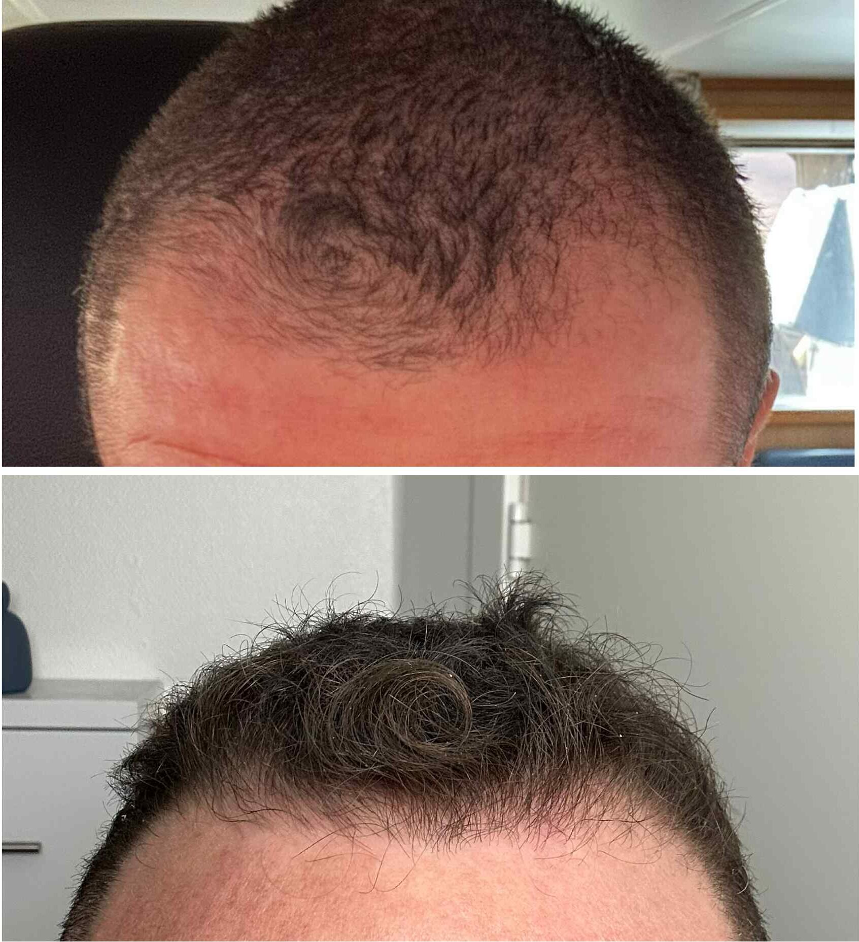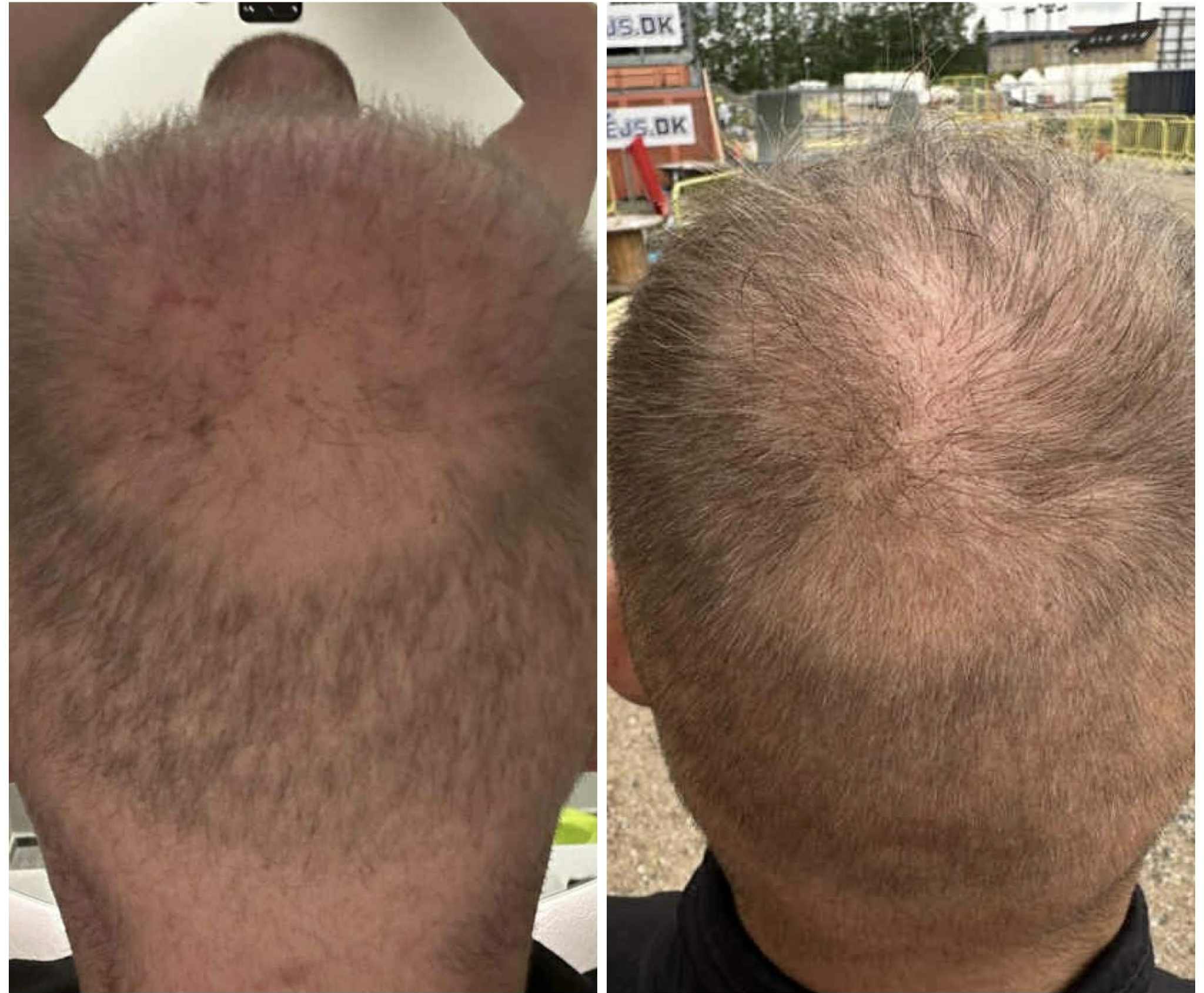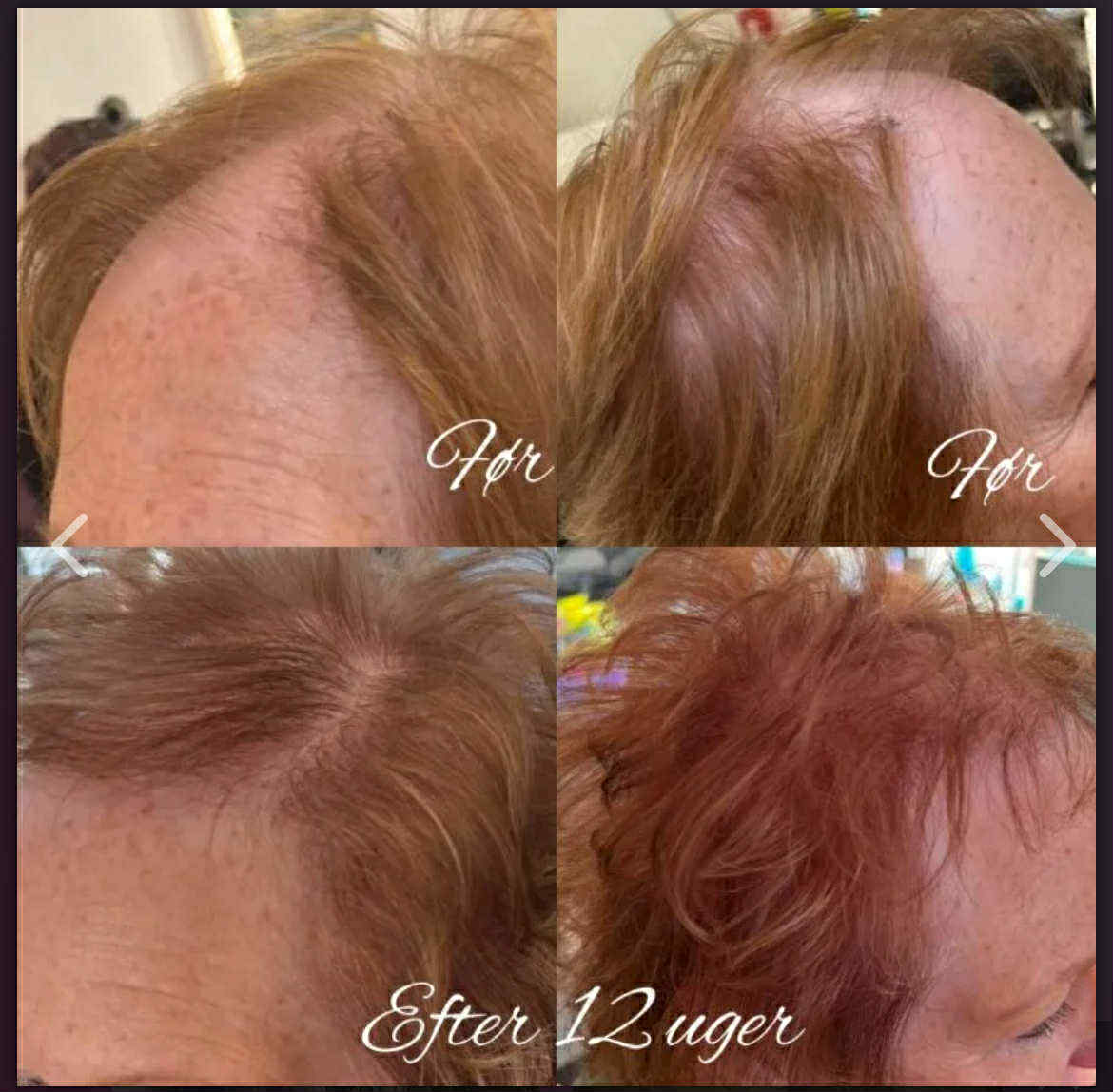 De fleste oplever synlige forbedringer allerede efter 3–4 behandlinger. Håret føles ofte tykkere og stærkere ved rødderne, og efter 2–3 måneder ses ny hårvækst i områder med udtynding.